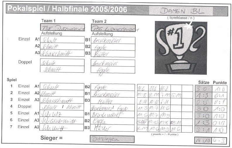 | Spiel 1 | TSF Ditzingen 1 |