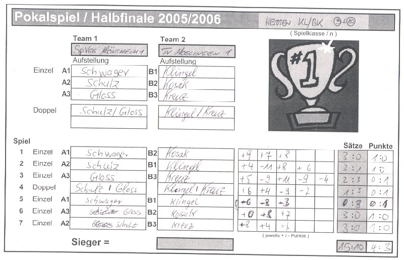 | Spiel 1 | SV Horrheim 1 |