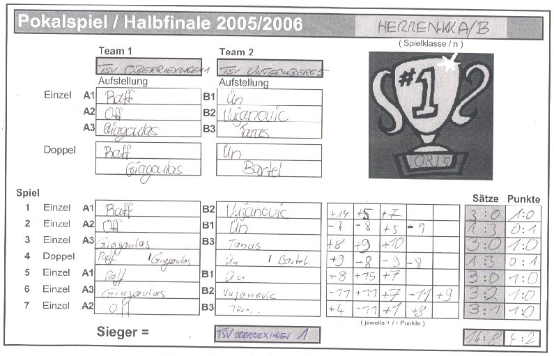 | Spiel 1 | TSV Oberriexingen 1 |
